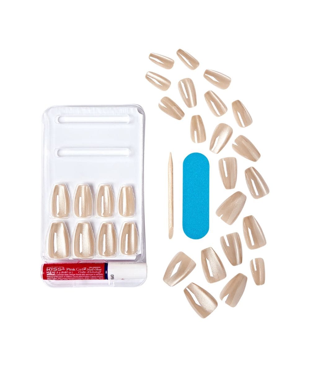 A ready‑to‑wear gel press‑on nail set combining trendy 3D design and durable wear. The "Moonbeam" shade offers a soft beige tone with subtle special effects, packaged in a full kit for a quick, salon-inspired manicure at home.