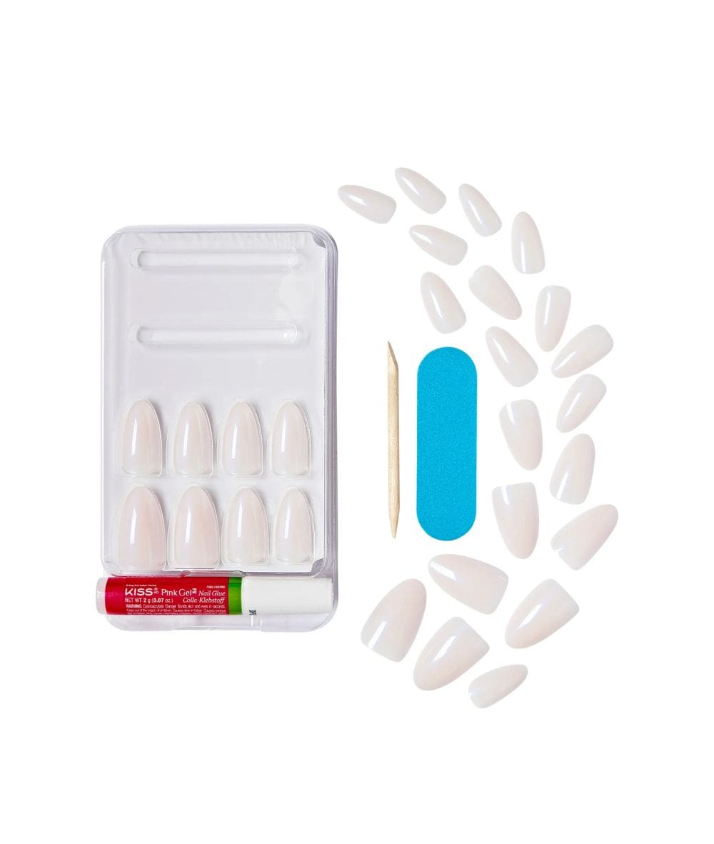 Comes with full kit: 28 nails, glue, mini file, and cuticle stick