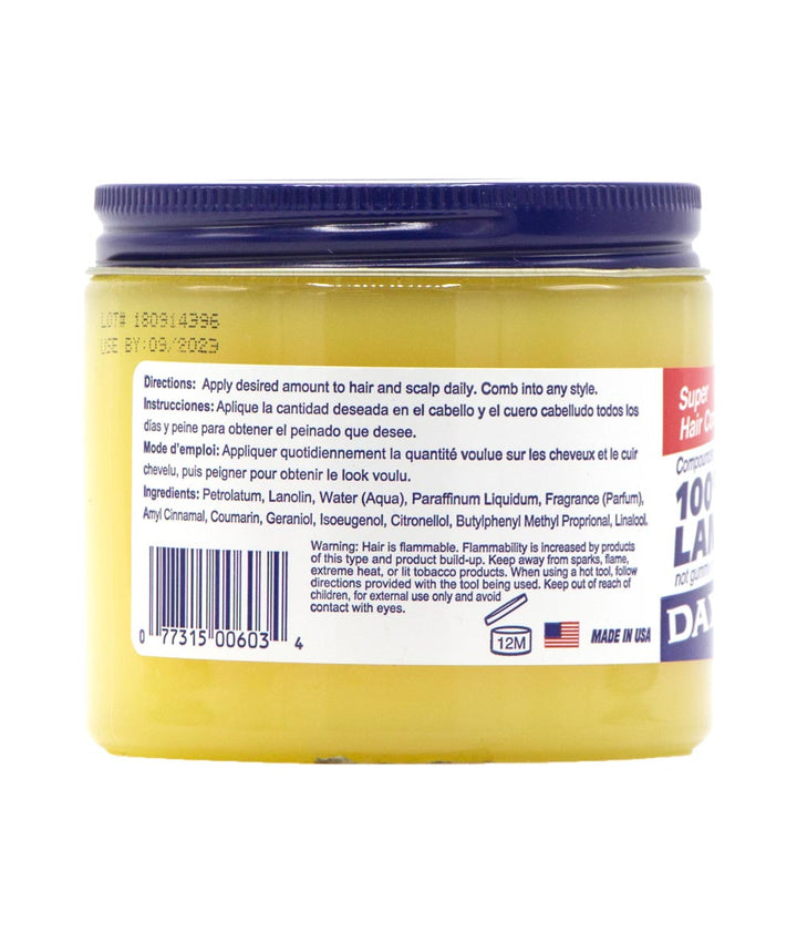 Restore strength, shine, and moisture to dry, damaged hair with DAX Super Hair Conditioner with 100% Pure Lanolin. Specially formulated to deeply nourish the scalp and hair, this rich, conditioning treatment helps prevent breakage, reduce frizz, and add a healthy sheen—making it ideal for textured, coarse, or chemically-treated hair.