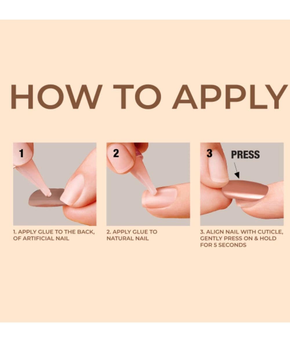 4.Align the press-on nail with your cuticle, press down firmly, and hold for 5 seconds.