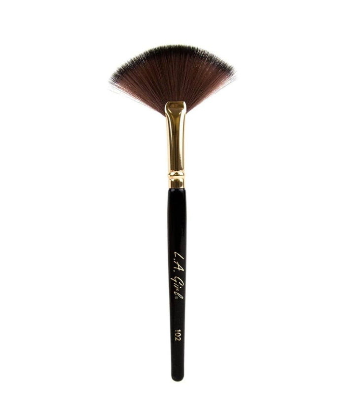 Create a glowing, luminous look with the LA Girl Pro Brushes Fan Brush #GPB102. This professional fan-shaped brush is designed to expertly apply highlighter, bronzer, or blush with a soft, diffused finish. The lightweight, ultra-soft bristles ensure a delicate touch, allowing for precise product placement and seamless blending. Perfect for adding a subtle highlight to the cheekbones, nose, or décolletage, this brush is a must-have in any makeup kit. The ergonomic handle provides easy control for a flawless application every time.