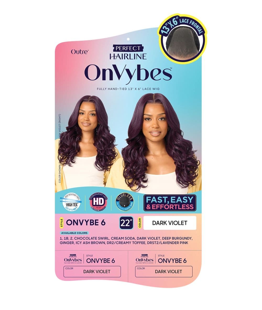 A long, glueless lace front wig from Outre’s OnVybes collection, offering a naturally flattering hairline and easy, everyday styling without adhesives.